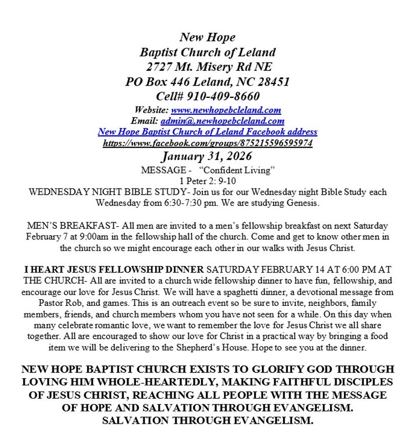 2727 Mt. Misery Rd NE. Leland, NC. 28451 Pastor Robin Looney 910-409-8660