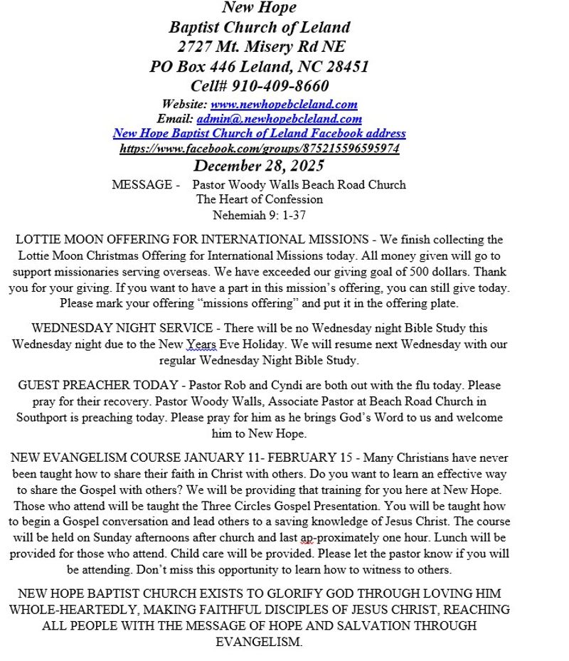 2727 Mt. Misery Rd NE. Leland, NC. 28451 Pastor Robin Looney 910-409-8660